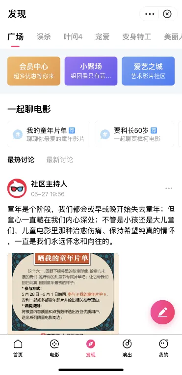 不过,淘票票的支付宝小程序却并没有砍掉演出服务,还将“快看”替换成了主打社区互动的“发现”。