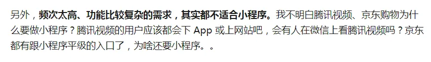 当然,小黑不是小程序的长期用户,所以小黑截取了知乎和微博两个社交网站的几条回答,来展现用户们对小程序的看法:
