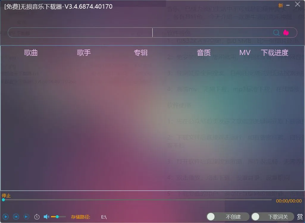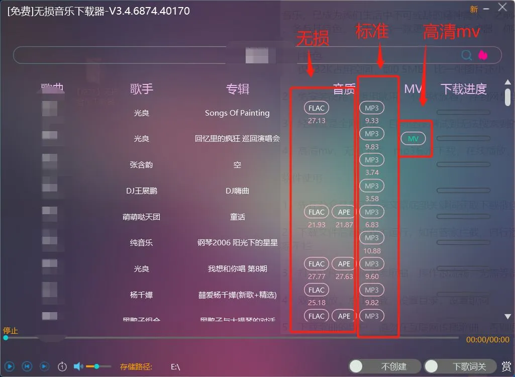 高清mv,无损下载,mp3标准下载,在线播放,还能同步下载歌词。