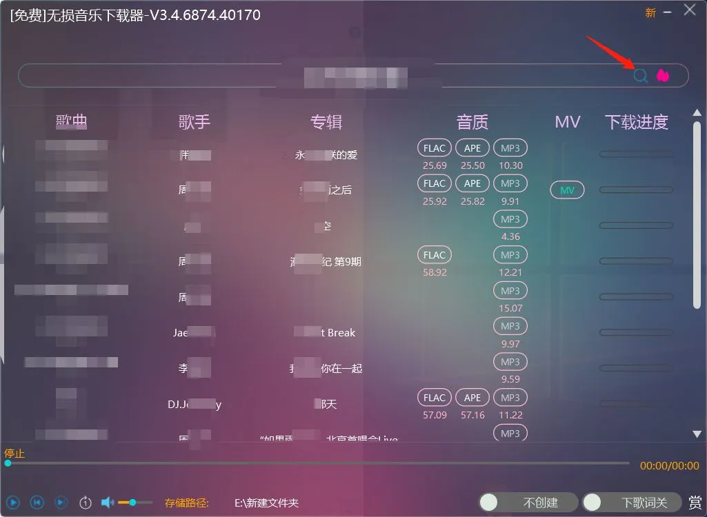 打开软件后直接搜索歌曲,操作很流畅,无需等待。