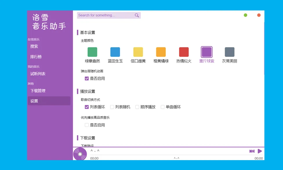 首先说一下它的主题功能,默认是绿色盎然,还有其它六种颜色可以进行选择,大家可以在设置中替换成自己喜欢的颜色,我这里选择的是重斤球紫(作者真是个人才)