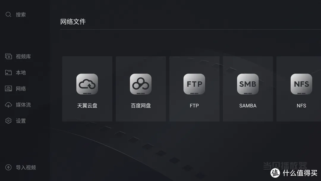 在视频导入方面,除支持u盘、移动硬盘等外接设备导入,还可以选择局域网导入。考虑到了部分不方便连接外接设备用户的需求。同时支持天翼云盘、百度网盘等云端登录观看。