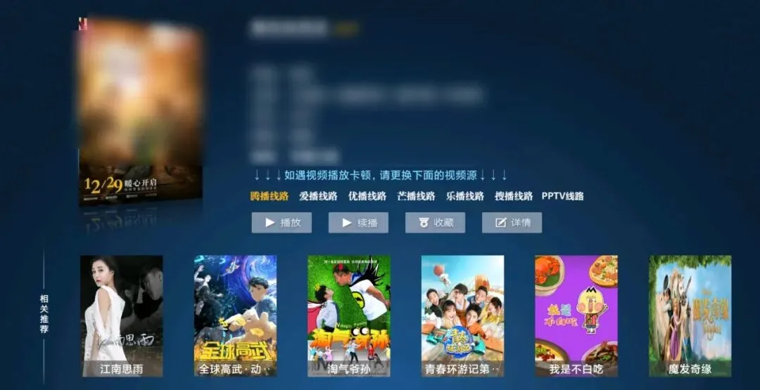 影视播放路线也是加入了多条:藤播、愛播、优播、杧播、乐播、搜播、P播等,这些路线可以切换使用,影片基本上都能播放成功。