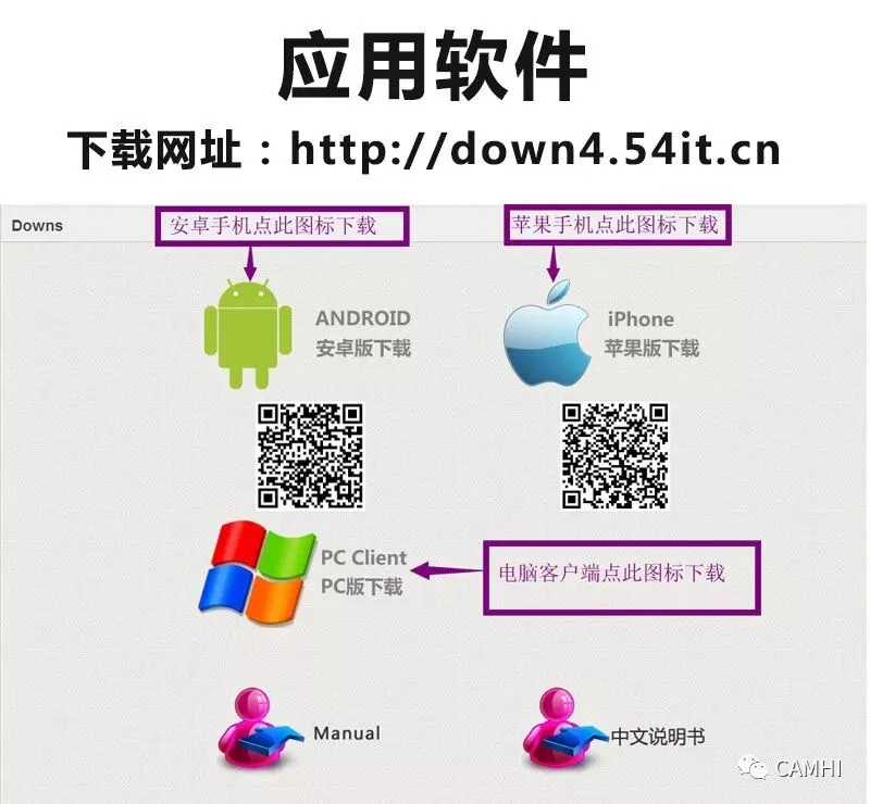 下载方式2、安卓APP/苹果APP/ 电脑PC端,如下图:浏览器输入官方下载网址:http://down4.54it.cn 进入后选择对应软件下载。【安装途中弹出提示是否允许安装权限,请全部选择 允许安装。】