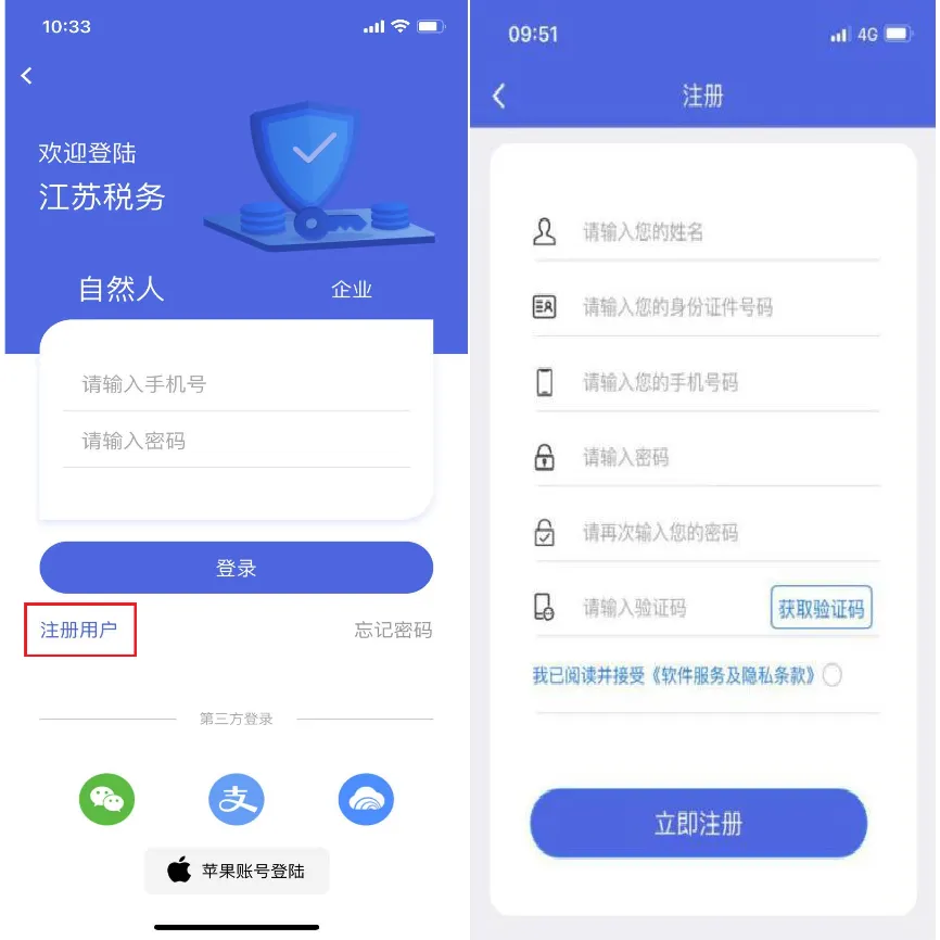 点击左下角【注册用户】,进入账号注册界面,完整填入所有信息后,点击【立即注册】,即可完成注册。