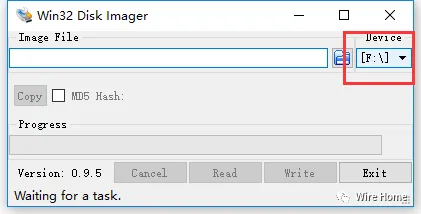 打开win32软件,把刚才下载好的系统写进内存卡,设置选择TF卡,镜像选择你下载的系统文件,点击Write,等到进度100% 系统就安装完成 (注意右侧的盘符。)