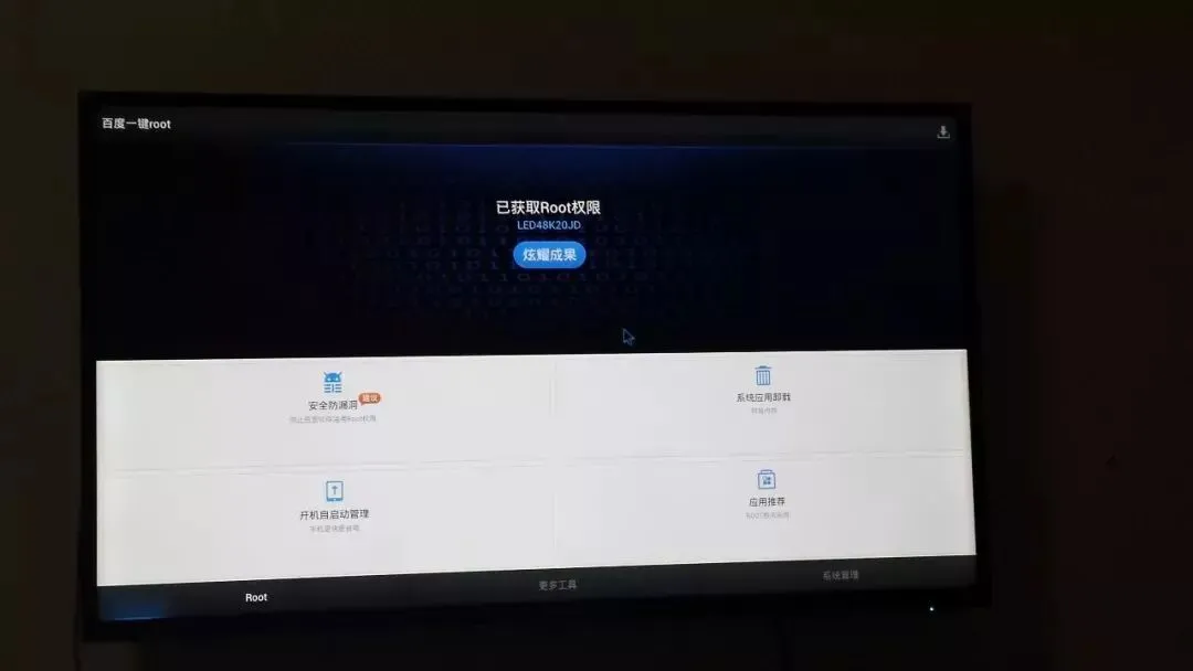 6.之后显示 ROOT 成功后,再将盒子关机重启一遍就可以自由安装或卸载软件啦!