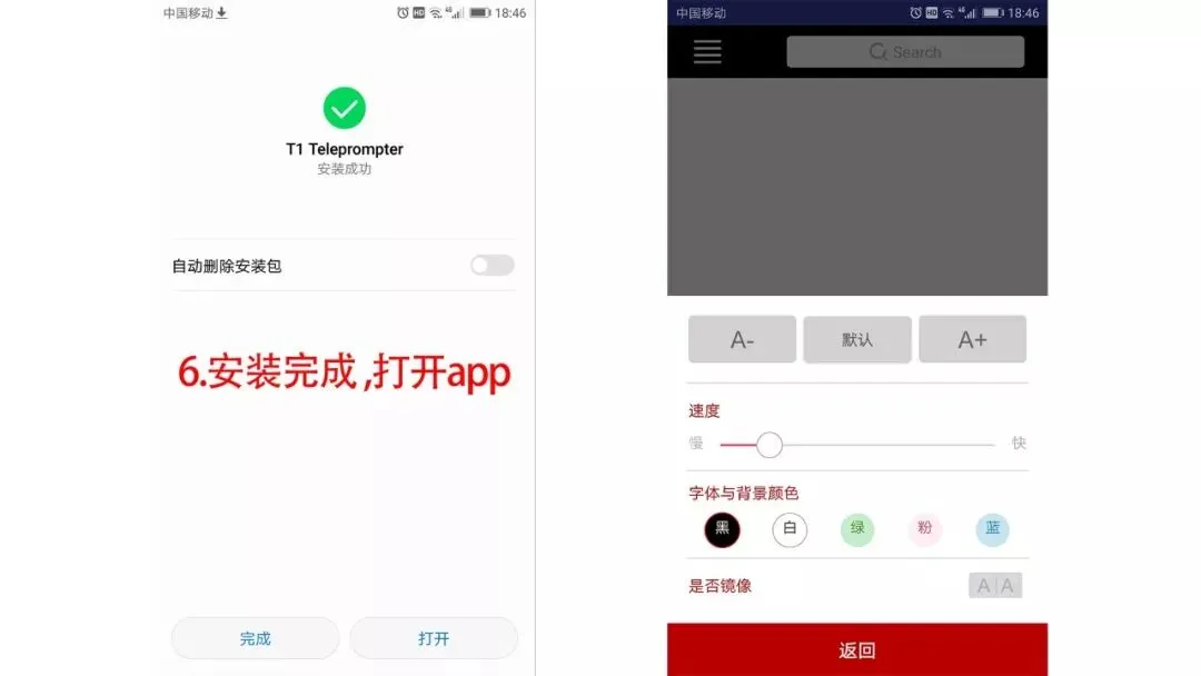 第六步:安装完成,即可使用T1手机提词器app