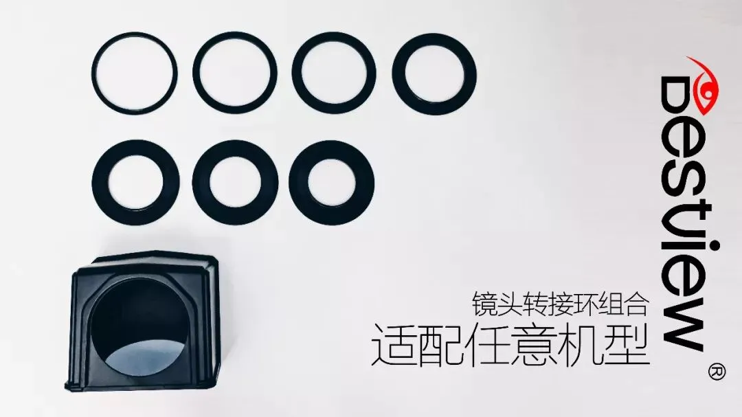 目前,T1提词器支持77mm以下口径的镜头群,不区分摄影机机型,只区分镜头口径;T1提词器标配了8种镜头转接环:49mm、52mm、55mm、58mm、62mm、67mm、72mm以及77mm。从理论上说,可以完美适配当前市面上所有机型实现提词功能。