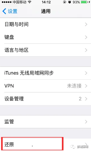 6.在点击”通用“项之后将弹出来的页面向下拉取找到”还原“这一项。