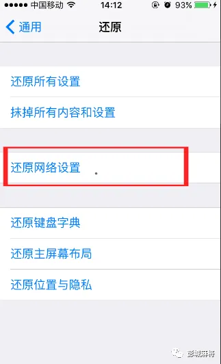 8.将”还原“这一项点开,在弹出来的页面找到并点击“还原网络设置”,然后输入自己的密码将网络设置还原来解决问题。