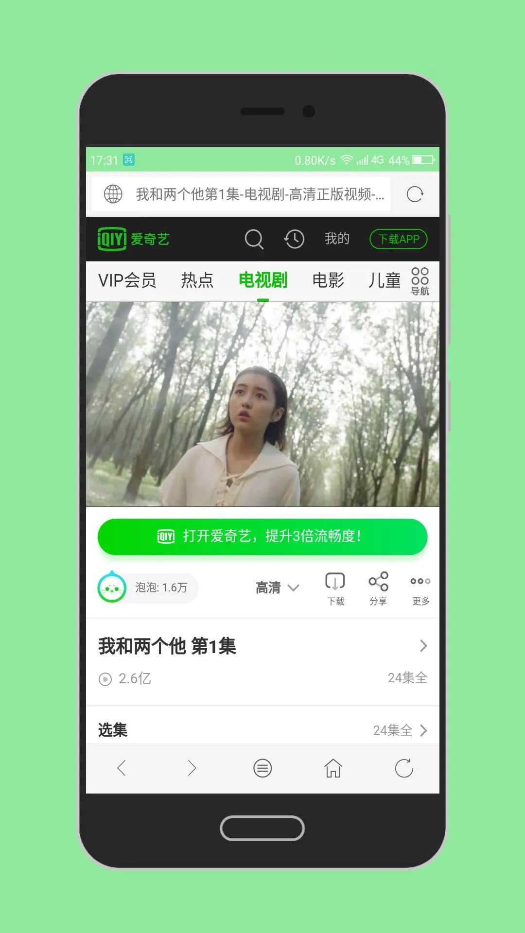 打开爱奇艺的VIP网剧《我和两个他》,VIP接口自动连接,稍等两秒后成功播放,过程中无需任何操作,跟平时观看视频相同,体验良好。