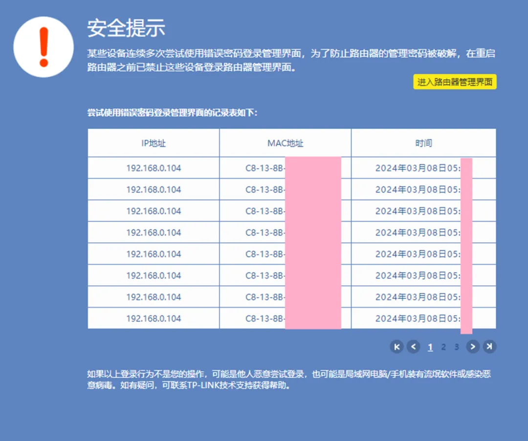 在 TP-LINK 的提示中,也提到如果这些登录行为不是用户自己的操作,那么有可能是他人恶意尝试登录,也可能是局域网电脑或手机装有流氓软件或感染恶意软件。