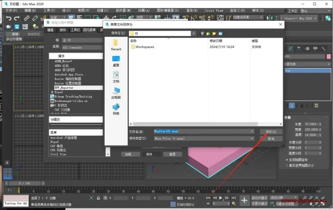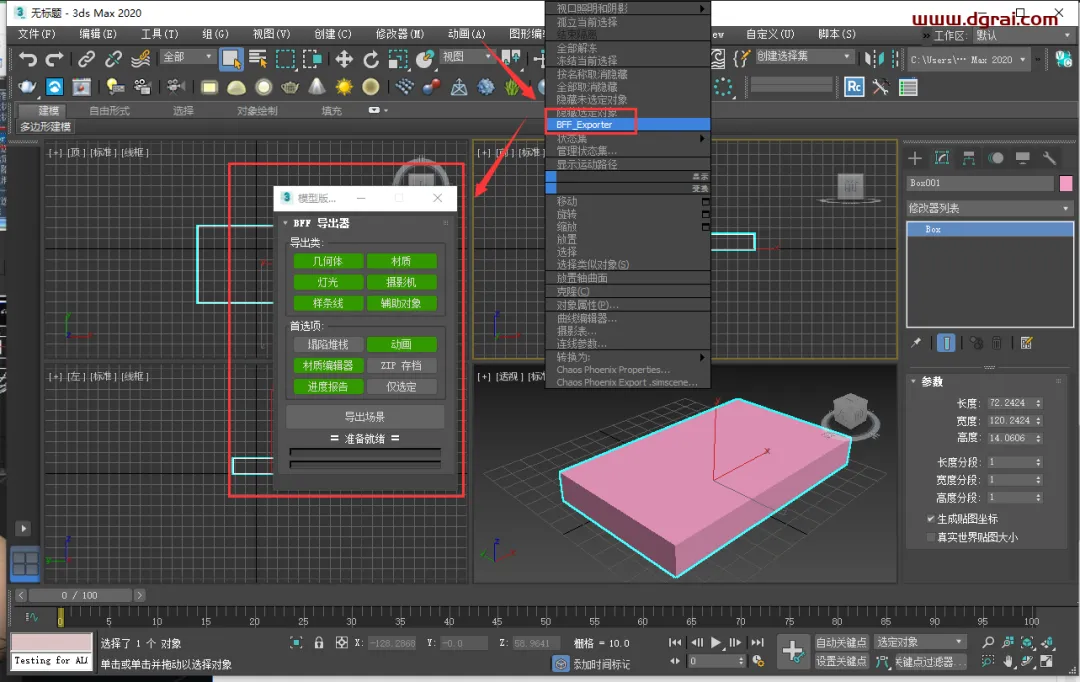 在3damx软件界面视图,鼠标右键点击BFF_Exporter,然后模型版本转换器0.4.3脚本插件就出现了,点击即可开始使用