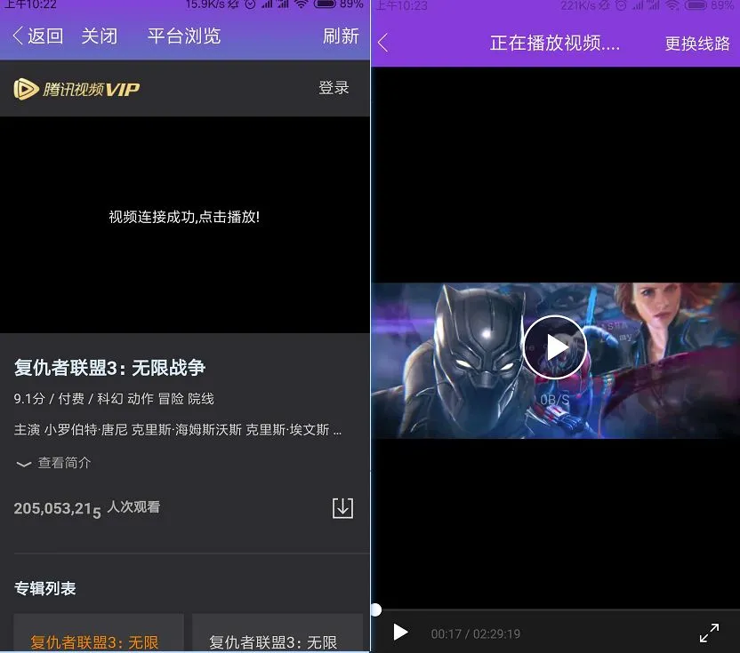 (以腾讯视频VIP影视 《复仇者联盟3为例》)