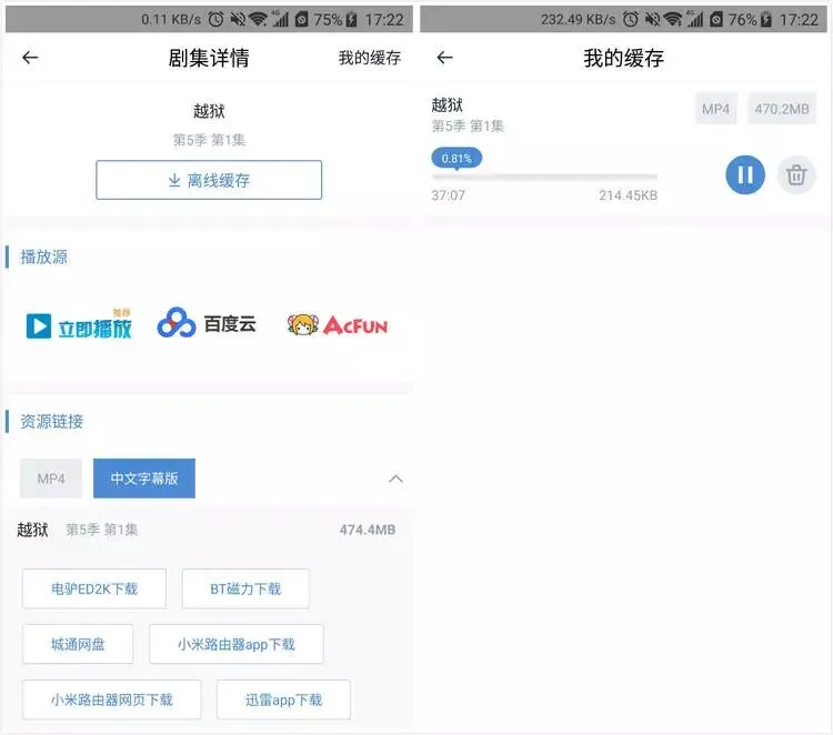一部分剧集支持在线观看和离线缓存。提供 A 站、百度云等在线播放源,也可以直接通过 BT 下载。经历过关站风波的人人影视以如此姿态重出江湖,不知道对于版权问题是怎么考虑的。