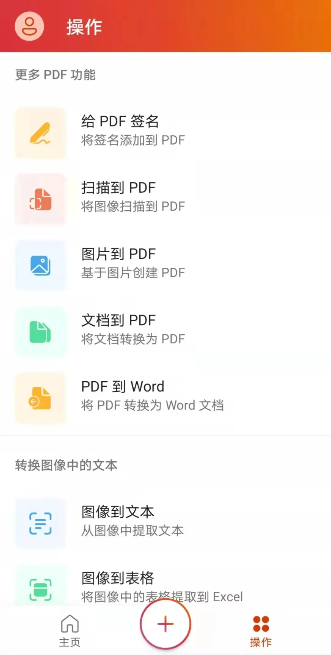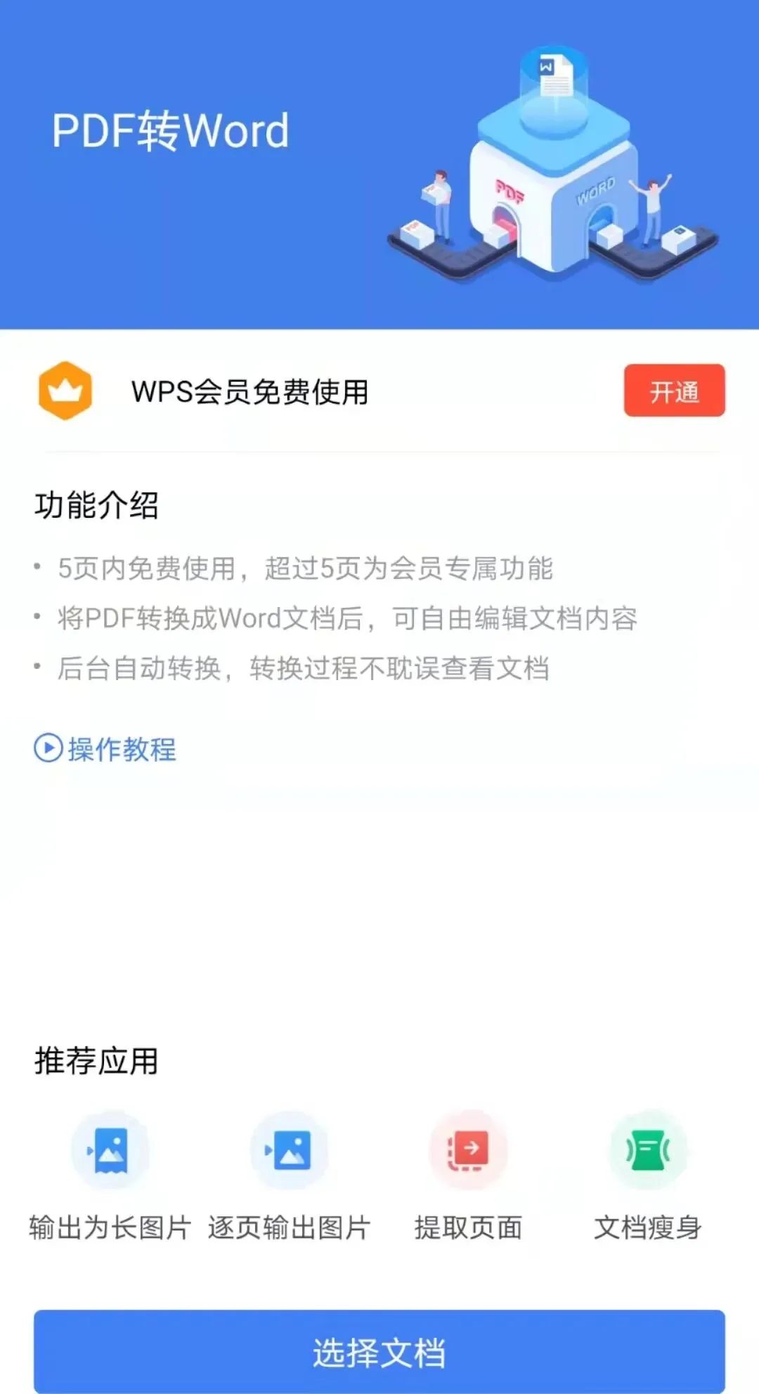 然后右边的操作中有一些实用的小工具,比如图片转PDF,文档转PDF,PDF转Word等