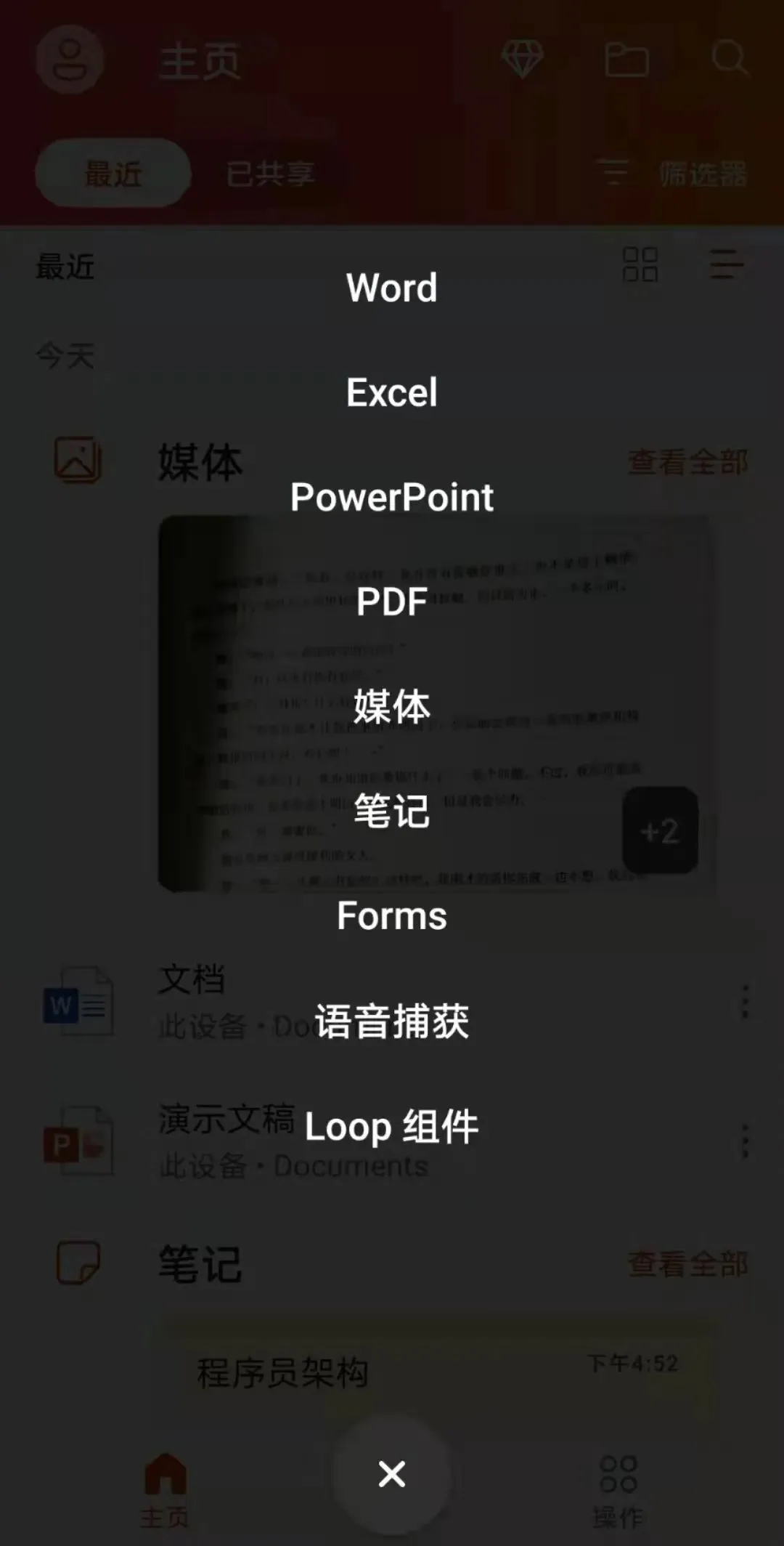 除此之外,我们也可以直接创建文档,比如创建Word,可以用扫描文本、听写、和空白文档的形式