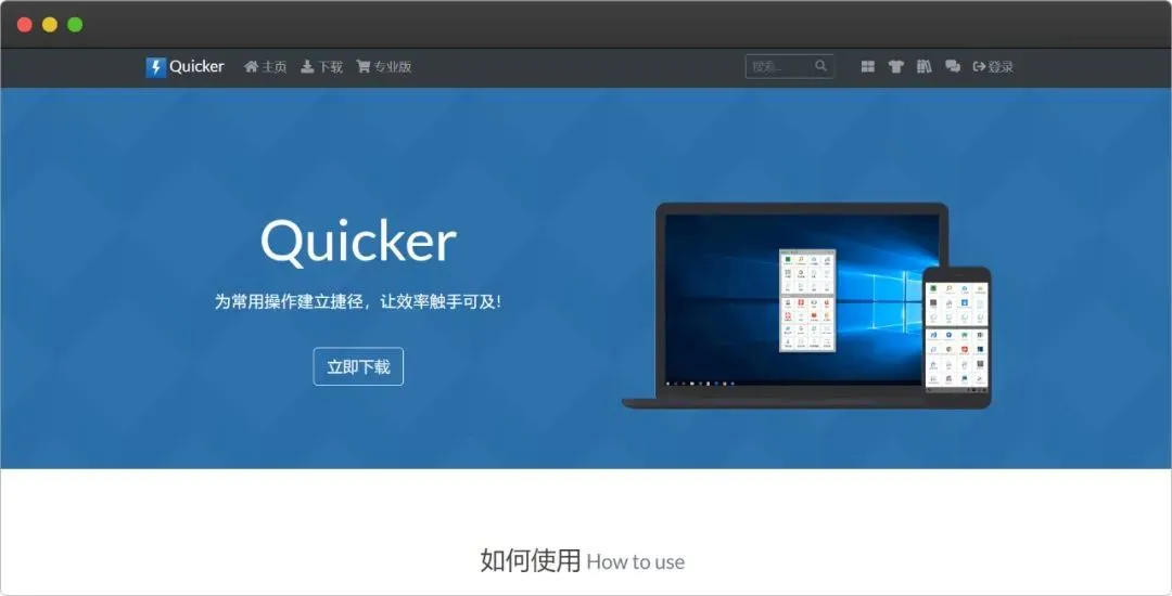 https://www.bandisoft.com/bandizip/三、Quicker-快速启动器Quicker 是 Windows 上的一款工具箱软件,它的里面内置了电脑里常用的截图、使用百度搜索关键字等常用的操作,可以通过写好的自动化程序,一键完成需要多个步骤的操作。除此之外,你还可以从 Quicker 动作库里选取一些别人分享的动作进行安装,来增强 Quicker 的能力。Quicker 的面板划分为上下两块区域:上方是全局按钮区域,里面的按钮不会因打开的 Windows 应用而发生变化;对于下方的区域,按钮则会根据当前打开的应用有所变化。Quicker 值得推荐的便是截图 OCR(文字识别)了,因为有时候我们在网上会看到一些值得保存的文本内容,但这些内容可能是以图片的形式存在,或者设置了禁止复制,让我们根本无法保存,那我们的 OCR 就可以很好的派上用场了。对于识别得到的文本内容,Quicker 还能进行翻译、搜索和多行合并等,能方便你对文本后续可能进行的处理。