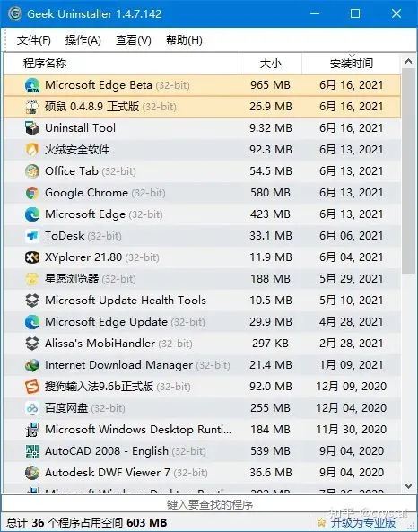 https://www.voidtools.com/zh-cn/五、Geek-卸载流氓软件神器Geek是一款专业的 Windows 软件卸载工具,真的是流氓软件的克星了,它自身内存非常小,只有 6M 大小,使用起来非常轻巧方便。软件不仅完全免费 ,而且整个操作页面干净简洁,没有任何广告,单文件绿色版,可以解压即用。打开 Geek Uninstaller,主界面列出了我们电脑上安装的所有软件列表。最近安装或修改过的,会以橙色突出显示。选中要卸载的软件,点击右键进行卸载,软件还会自动扫描卸载程序中残留的文件和注册表等。这款软件完全能够让你一键轻松删除所有残余垃圾,保持电脑的清洁!