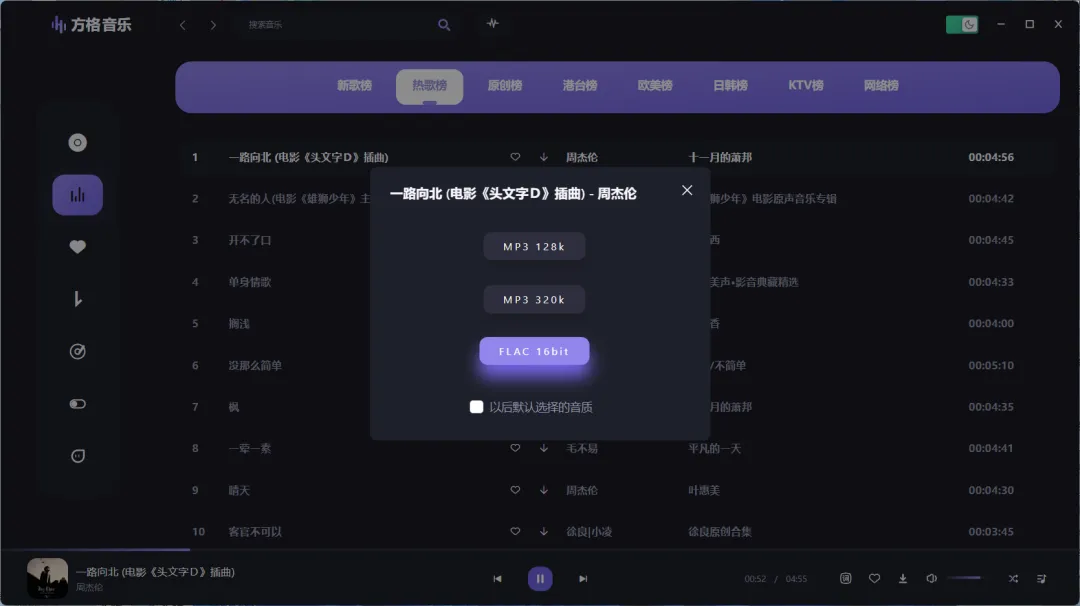 里面的歌曲支持不同种音质下载,默认是无损音质FLAC格式