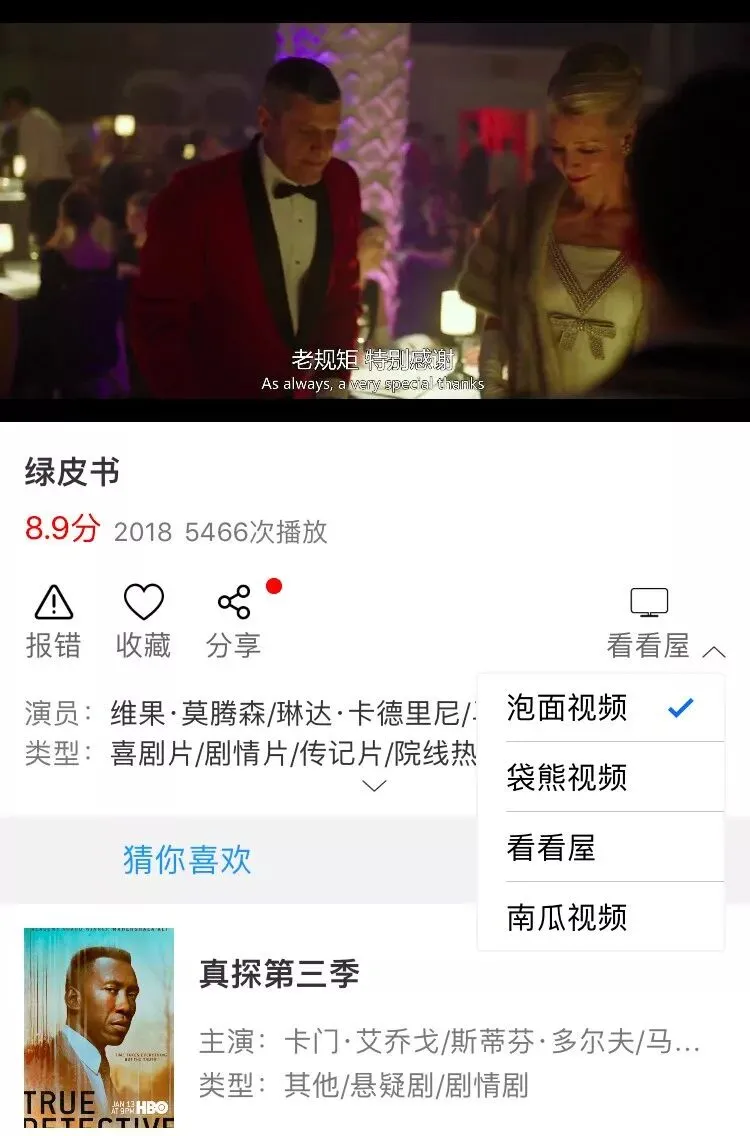 打开电视导航,你可以直接选择动作电影,经典港片和豆瓣高分电影等等,当然你也可以切换明星专场,根据明星来挑选自己喜欢的电影,随便点开一部电影你会发现影视资源来源其他平台,例如看看屋和麻花视频等平台,说白了不生产资源,只是一个播放器,避免了版权问题。