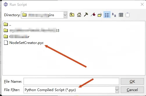 把生成的那个 .pyc 文件拿出来。 如果是新版本生成的,记得把文件名中间那一串 cpython-xxx 删掉,**改回 NodeSetCreator.pyc**。