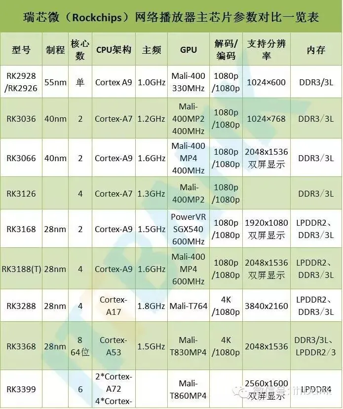 B3、英特尔,瑞芯微,全志,晶晨,联发科五大平板电脑处理器对比一览表