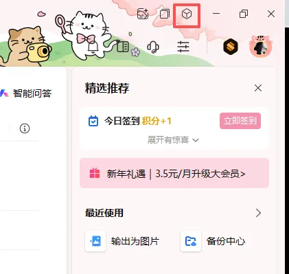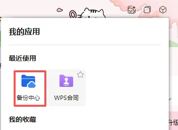 5.关闭上面打开的界面,回到wps打开的主界面,继续右上角,点击后选择备份中心
