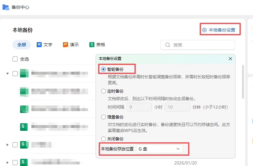 备份文件占用清理和软件设置