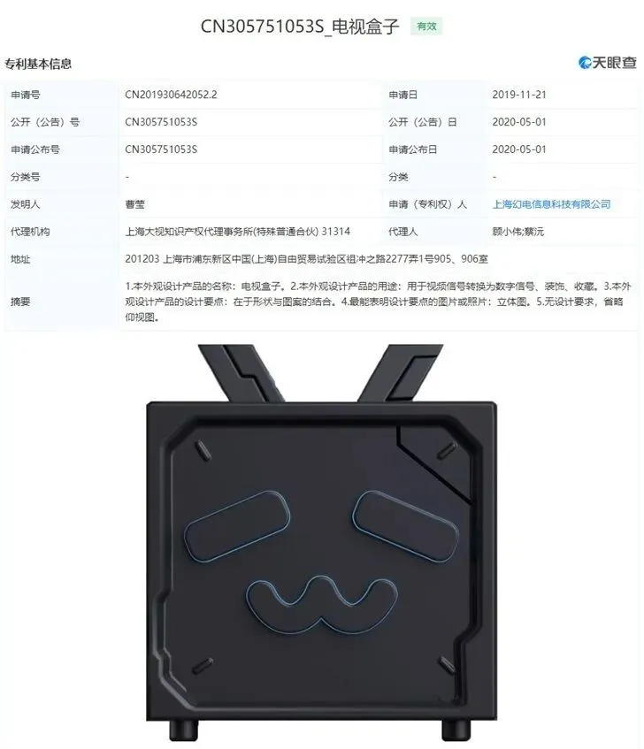 5 月 12 日消息天眼查专利数据显示,哔哩哔哩旗下公司上海幻电信息科技有限公司 5 月 1 日申请公布的外观专利「电视盒子」已成功授权,申请日期为 2019 年 11 月 21 日。
