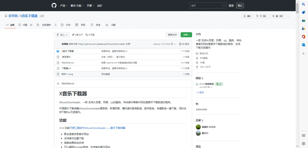 XMusicDownloader 在Github上是开源免费的,下载地址:
