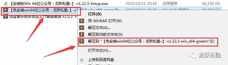 1、下载“免安装版本压缩包”鼠标右击选择“解压到…”