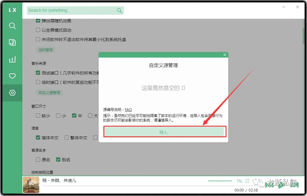 注:不论是安装板还是免安装版均需要导入音乐源、