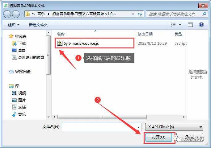 3、选中已下载的【音乐源】文件、点击【打开】、