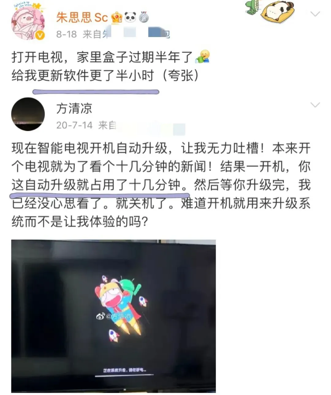 时不时系统就要给你来个自动升级,为了下饭打开的电视,更新升级完饭菜都凉了。