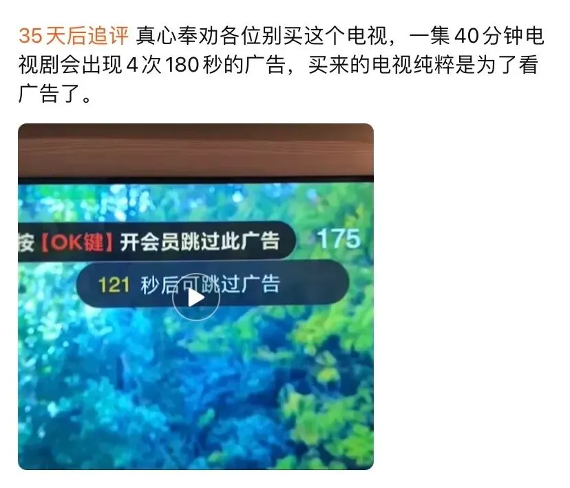 智能电视的出现本来解决了传统电视的诸多痛点,比如无法回放、无法看想看的节目等等,连价格也卷了起来,这些年我都经常感叹,现在的电视机竟然可以这么“便宜”。