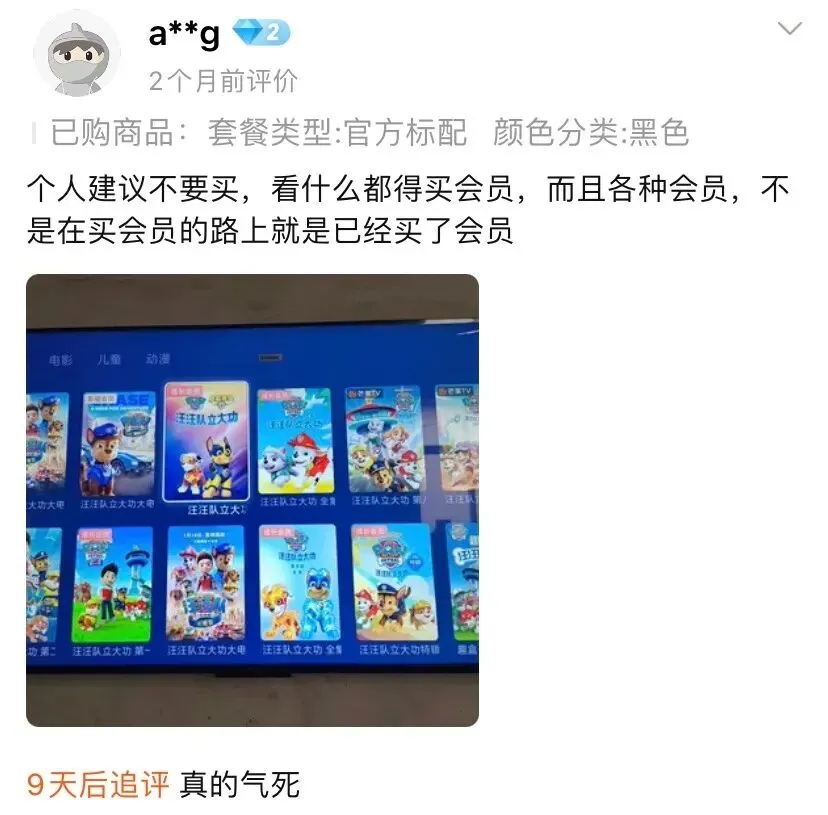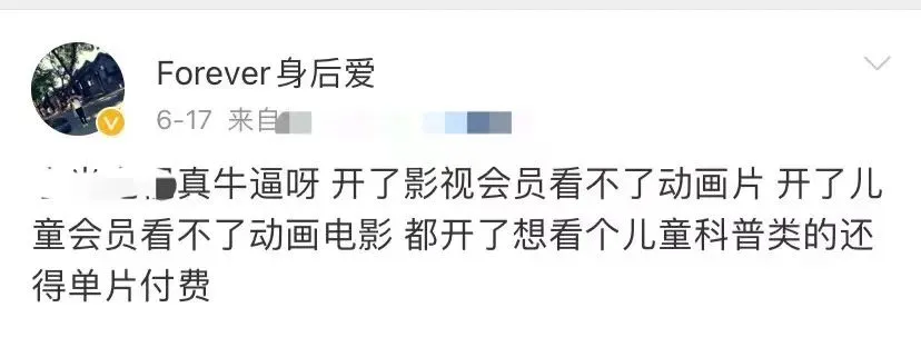 不同类型会员享受的服务还不一样,开一个会员免广告,再开一个给孩子看动画,想看点高评分电影还得再另外付费,这是我们尊贵的会员应该享受的待遇吗?