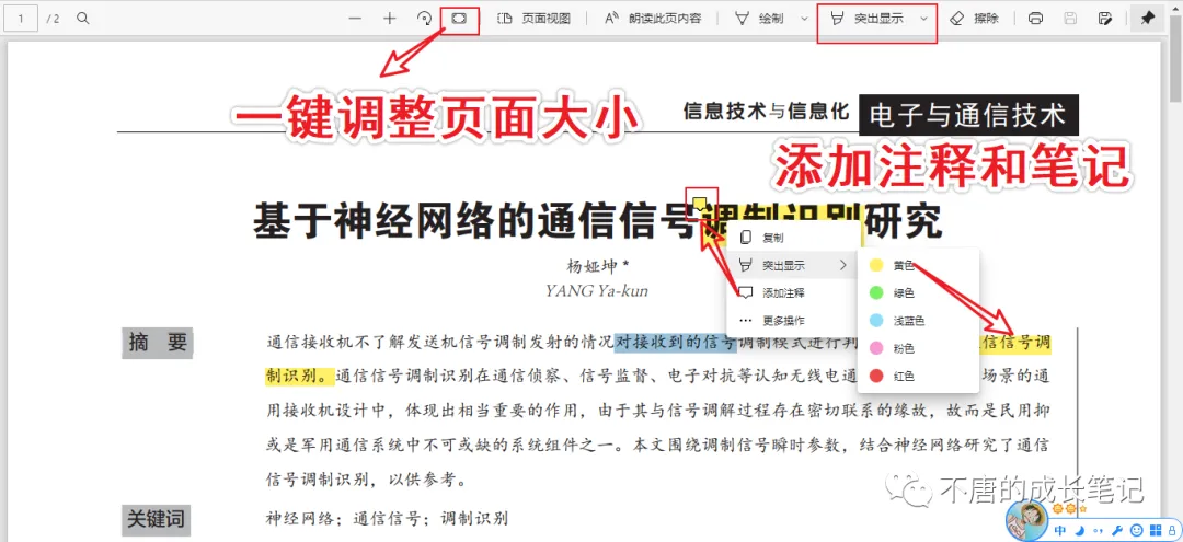 常用功能: 适合页面大小 | 添加笔记 | 高亮注释