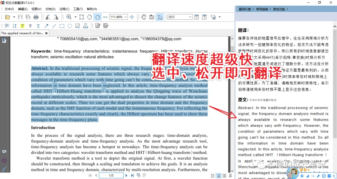 操作简单,选中需要翻译的文献,松开,即显示翻译结果。