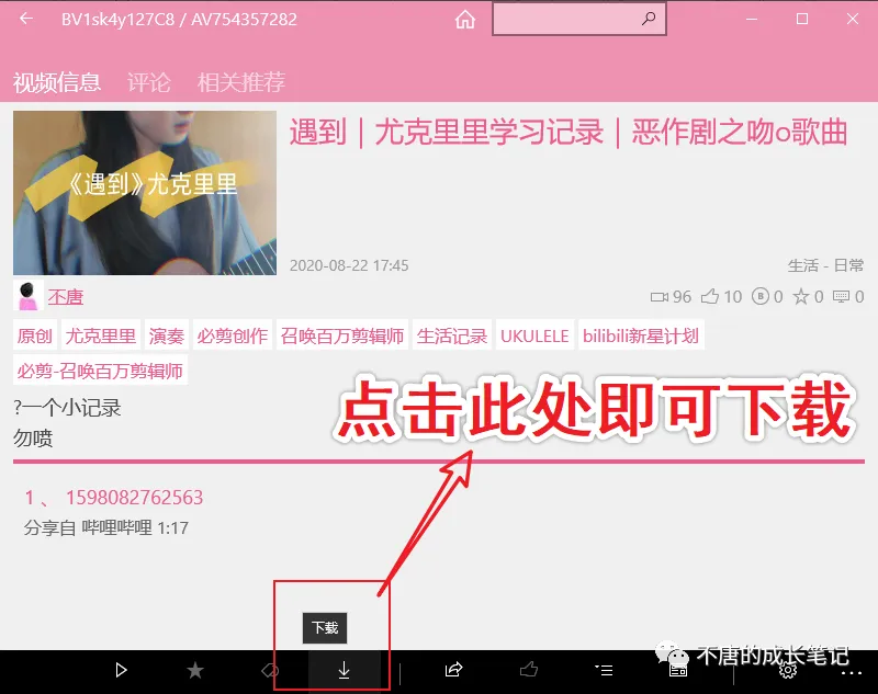 「 不唐的成长笔记 」 后台回复「 APP 」三个字母,直 达下载B站视频的 视频版和文字版跳转链接 。
