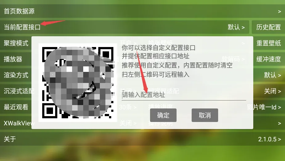进入设置页面可以看到界面,我们主要修改两个地方,一个是【首页数据】,一个是【配置接口】,记住顺序,第一个需要点击【配置接口】,点击配置接口之后会弹出一个输入框,这里属于源连接就可以了!