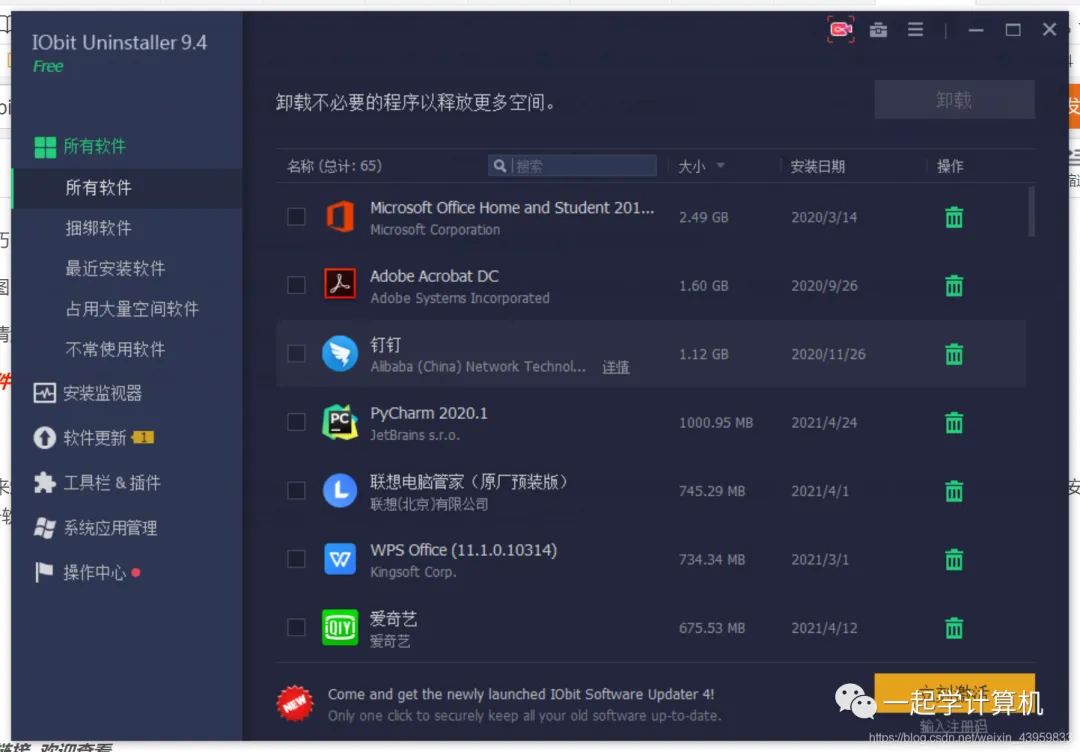 2.11 IObit Uninstaller(电脑软件彻底卸载, 包含注册表) 彻底解决软件卸载不干净的问题
