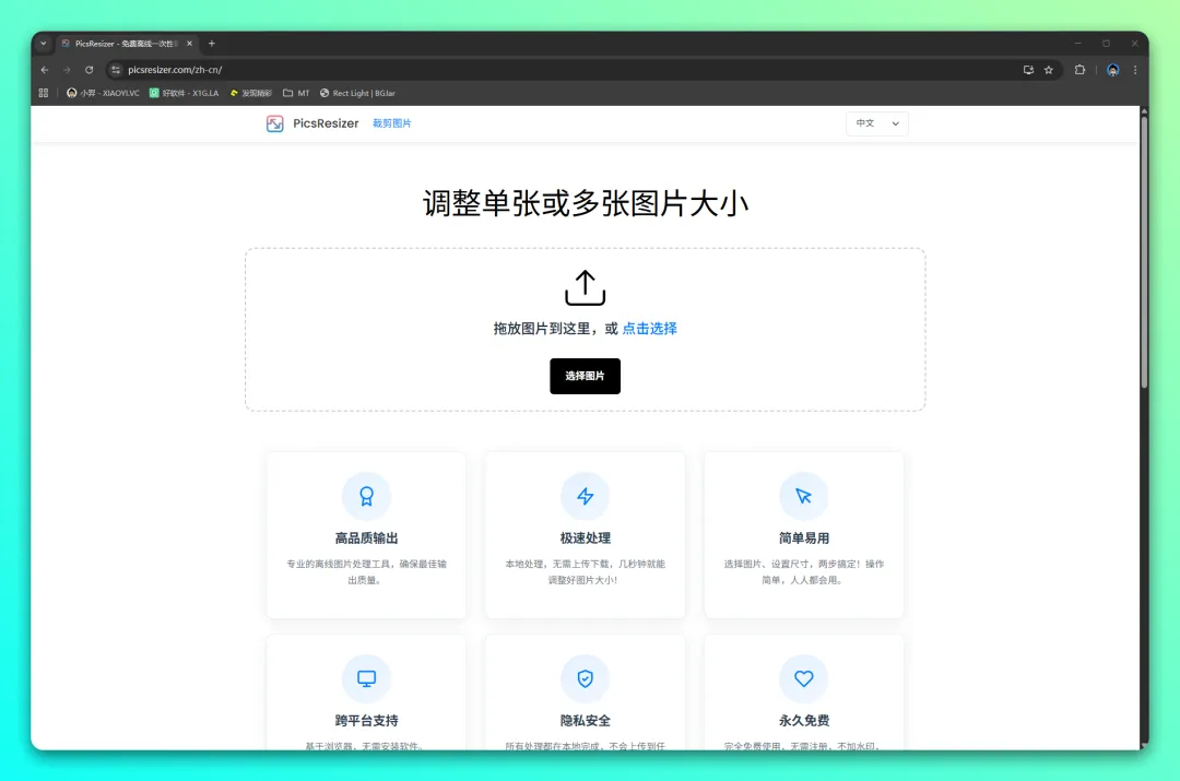 免费批量图片处理工具「PicsResizer」采用离线处理方式,所有操作都在您的设备上完成,无需上传到服务器, 访问网站后即可使用,无需注册账号,建议收藏备用。