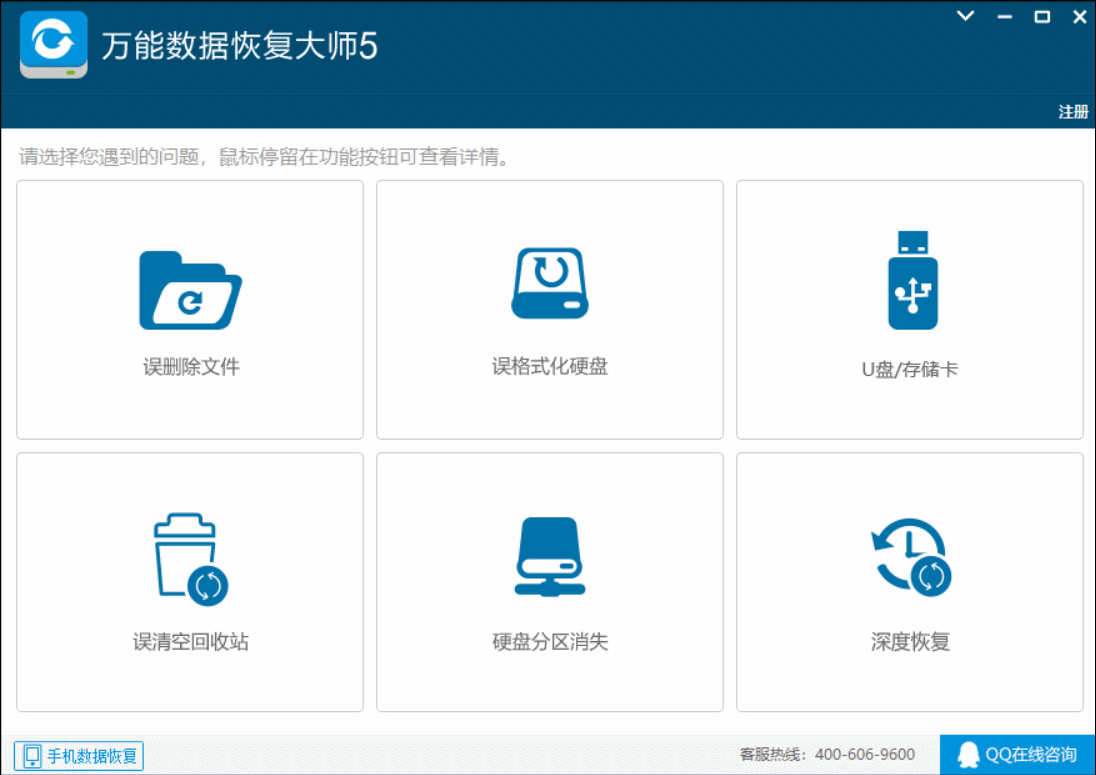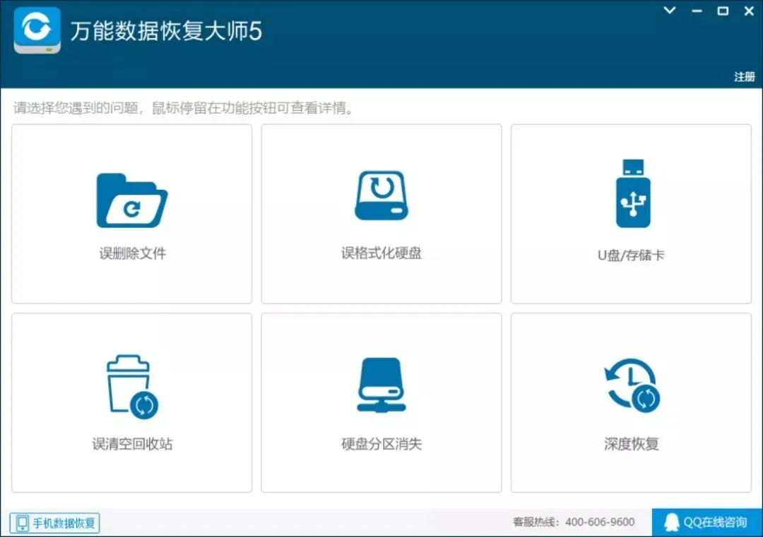 那么我建议你用这款工具万能数据恢复大师5