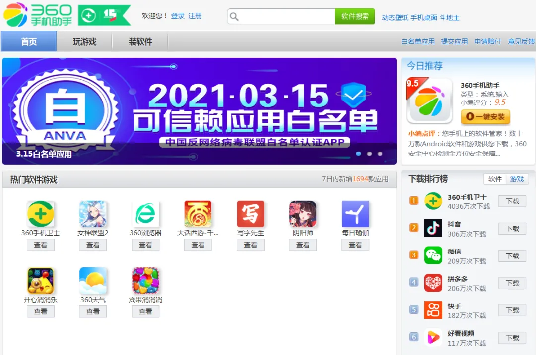 很多人都下载过360电脑版的助手,其实手机版也有,不过用的人可能比较少,收录的应用还是比较多,主流的基本上能找到,当然也只能下载最新的版本。