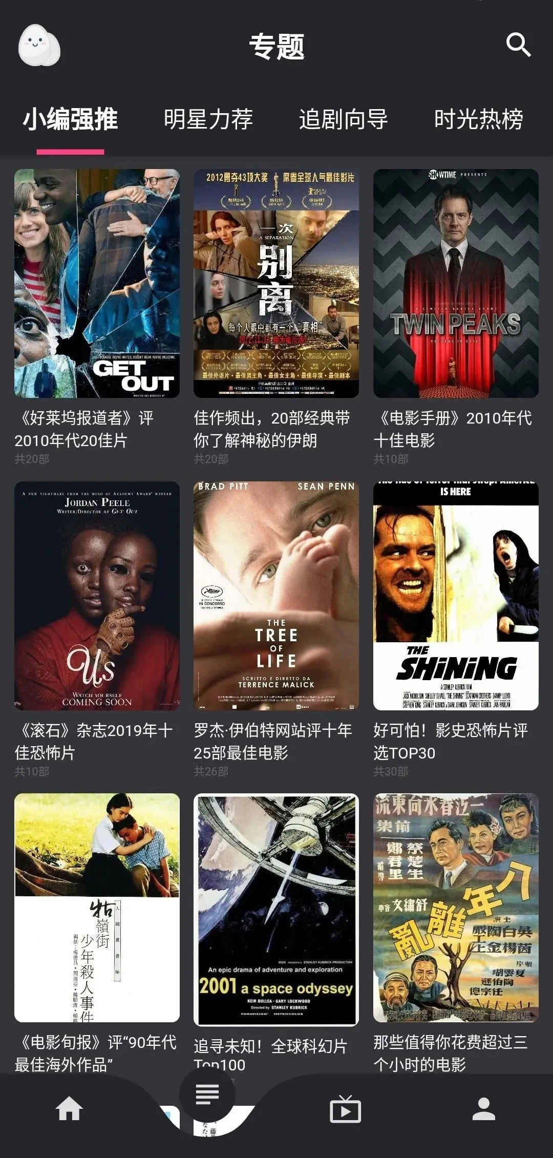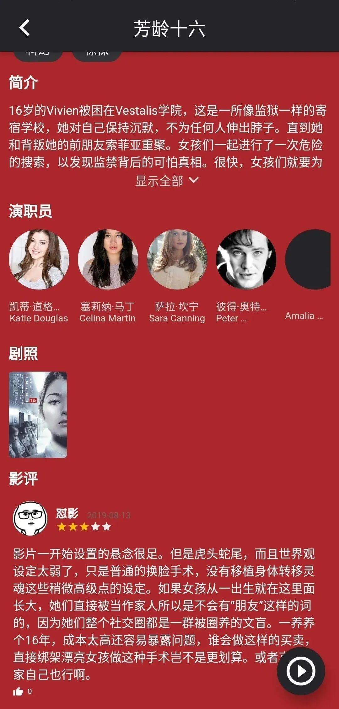 App内UI设计良好,使用感受极佳。内附许多不同类型的片单推荐,每个剧集的页面都载入了简介/演员表/影评,令用户体验更加完善。App内也没有任何广告,使用起来非常清爽。