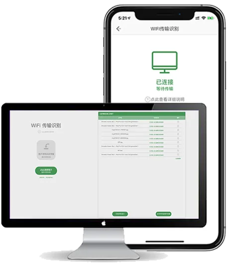 通过WiFi,App通过配对码连接电脑浏览器(Windows PC / Mac),效率更高