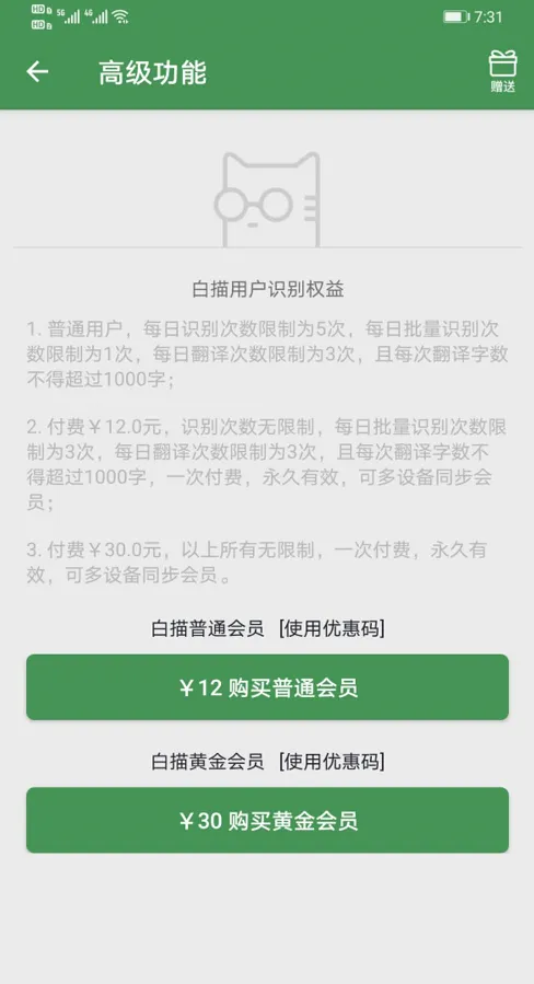 白描,像猫一样灵动的OCR扫描识别神器。具备高准确度的文字识别、表格识别转Excel、批量识别、识别后翻译、文件扫描等功能。