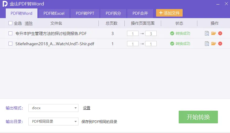 添加PDF文档,点击【PDF转word】(注意设置输出格式为docx/doc)